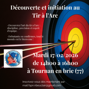 - Atelier découverte / initiation au tir à l’arc le mardi 17/02/2026 à Tournan en brie (77)