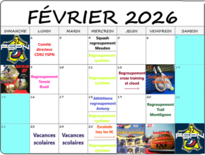 Pour le mois de février 2026, le CD92 FSPN organisera des regroupements comme suit :