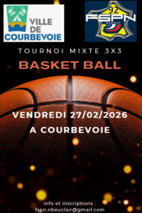- Basketball : Tournoi 3×3 mixte le vendredi 27/02/2026 à Courbevoie (92)