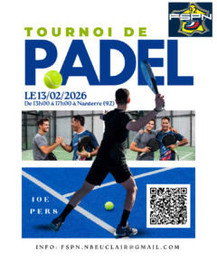 - Tournoi de padel le vendredi 13/02/2026 à Nanterre (92)