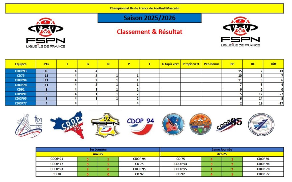 En ce mois de février à eu lieu la 4ème journée du Championnat Ile de France de football FSPN.