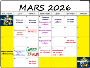 Pour le mois de Mars 2026, le CD92 FSPN organisera des regroupements comme suit :