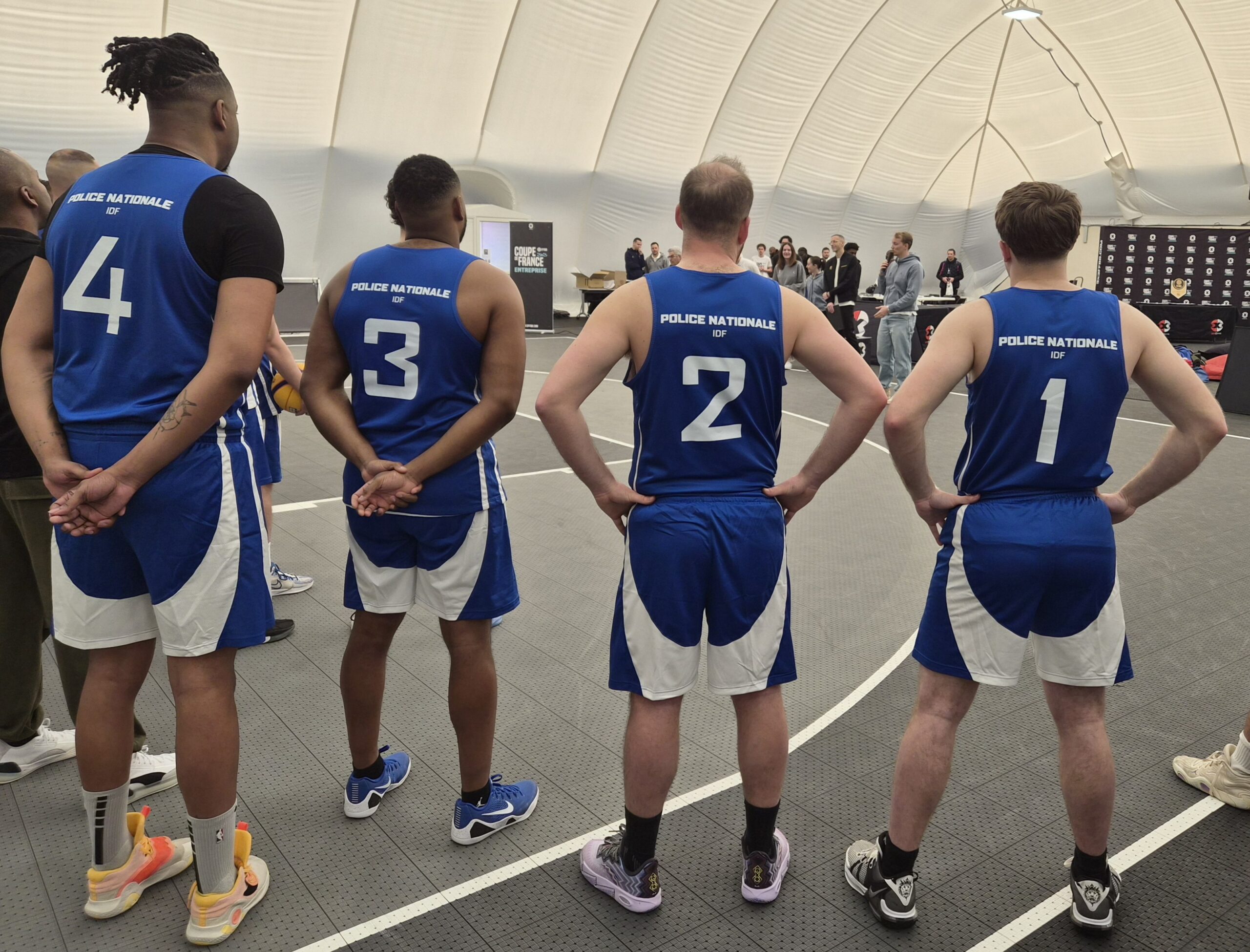 Remise de la tenue floquée « Police Nationale IDF » pour notre équipe, suivie d’un briefing sur le déroulement du week-end.