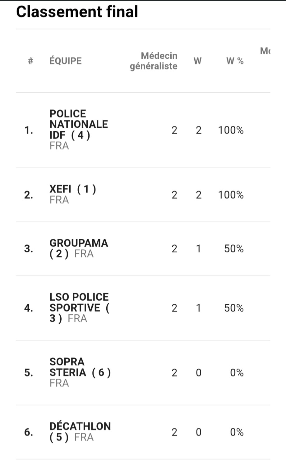 - Équipe IDF : 2 victoires – 3 défaites