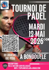 • Padel : Tournoi le mardi 12/05/2026 à Bondoufle (91)