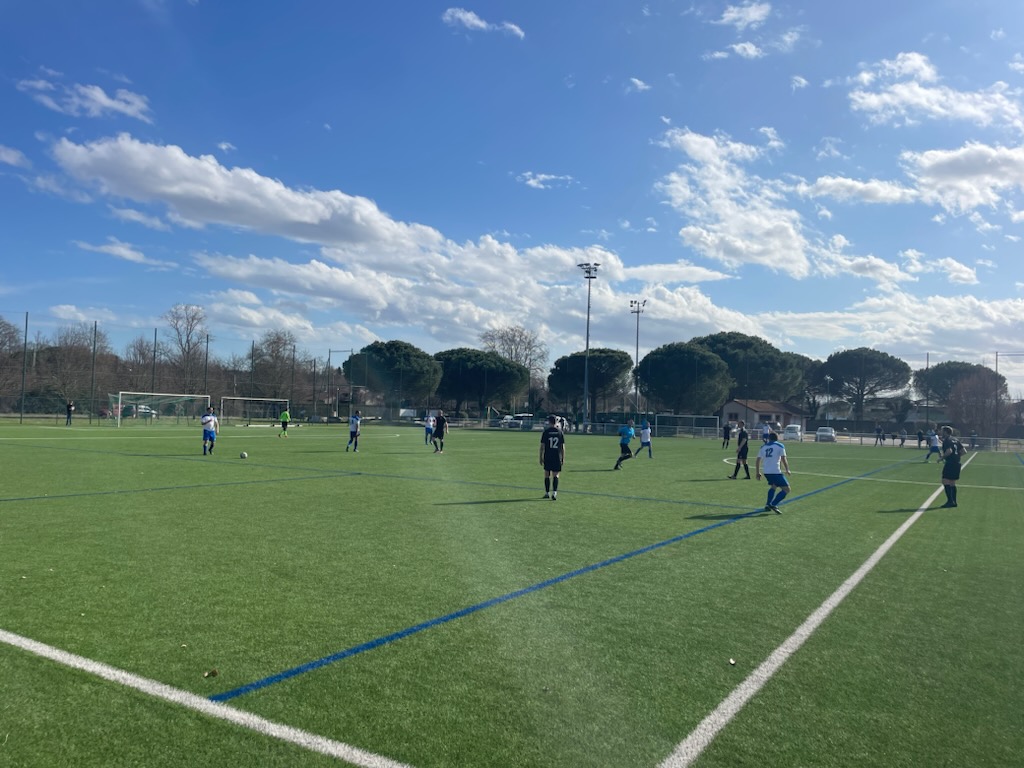 Le match se jouait jeudi dernier, à 14h, sur le terrain synthétique de Cornebarrieu. Notre équipe subissait d’entrée le jeu bien en place des nordistes et, au bout d’un 1/4 d’heure, sur un énième décalage dans leur couloir droit, notre gardien Manu.H détournait dans l’axe le centre de l’attaquant adverse, le ballon étant alors repris imparablement pour le 1er but de la rencontre : 0-1 !