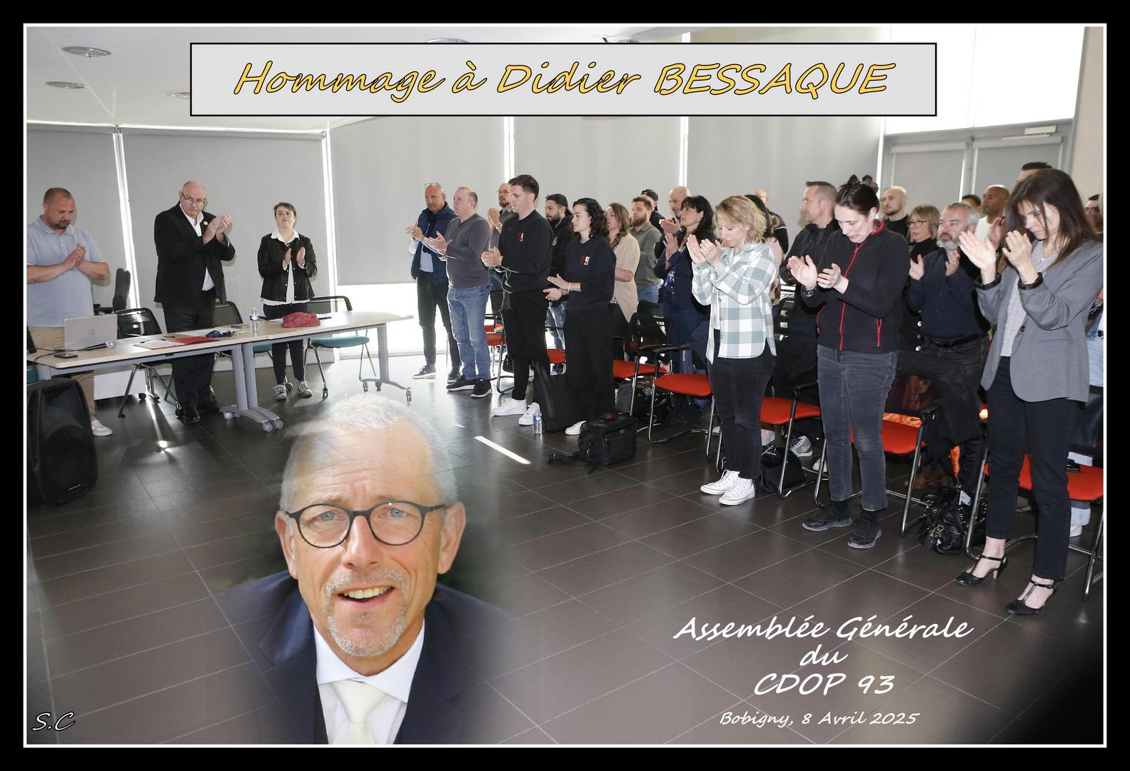 L’assemblée Générale a également honoré Monsieur BESSAQUE Didier, ancien Secrétaire Général du CDOP 93, parti trop tôt, par une minute d’applaudissement.