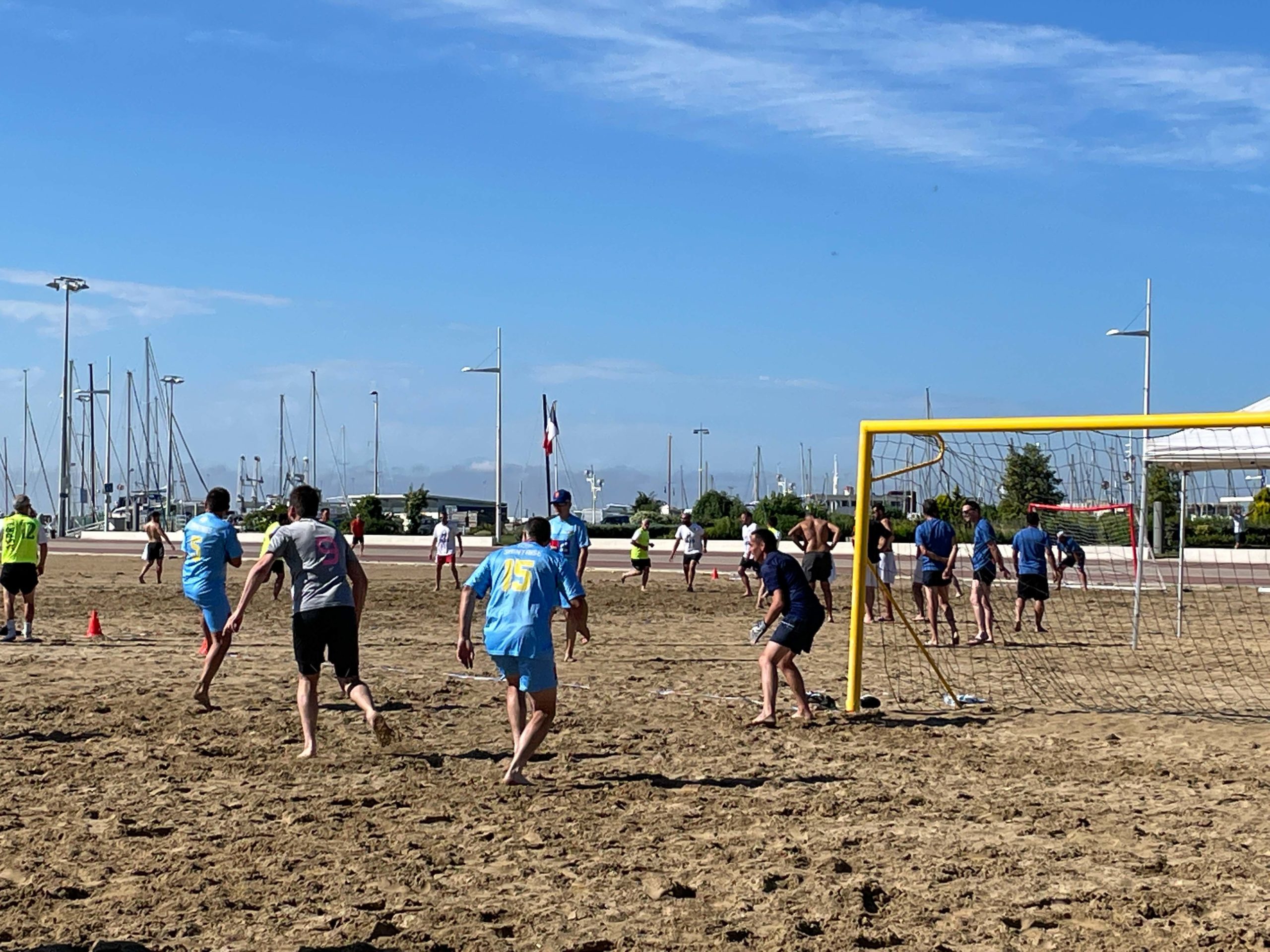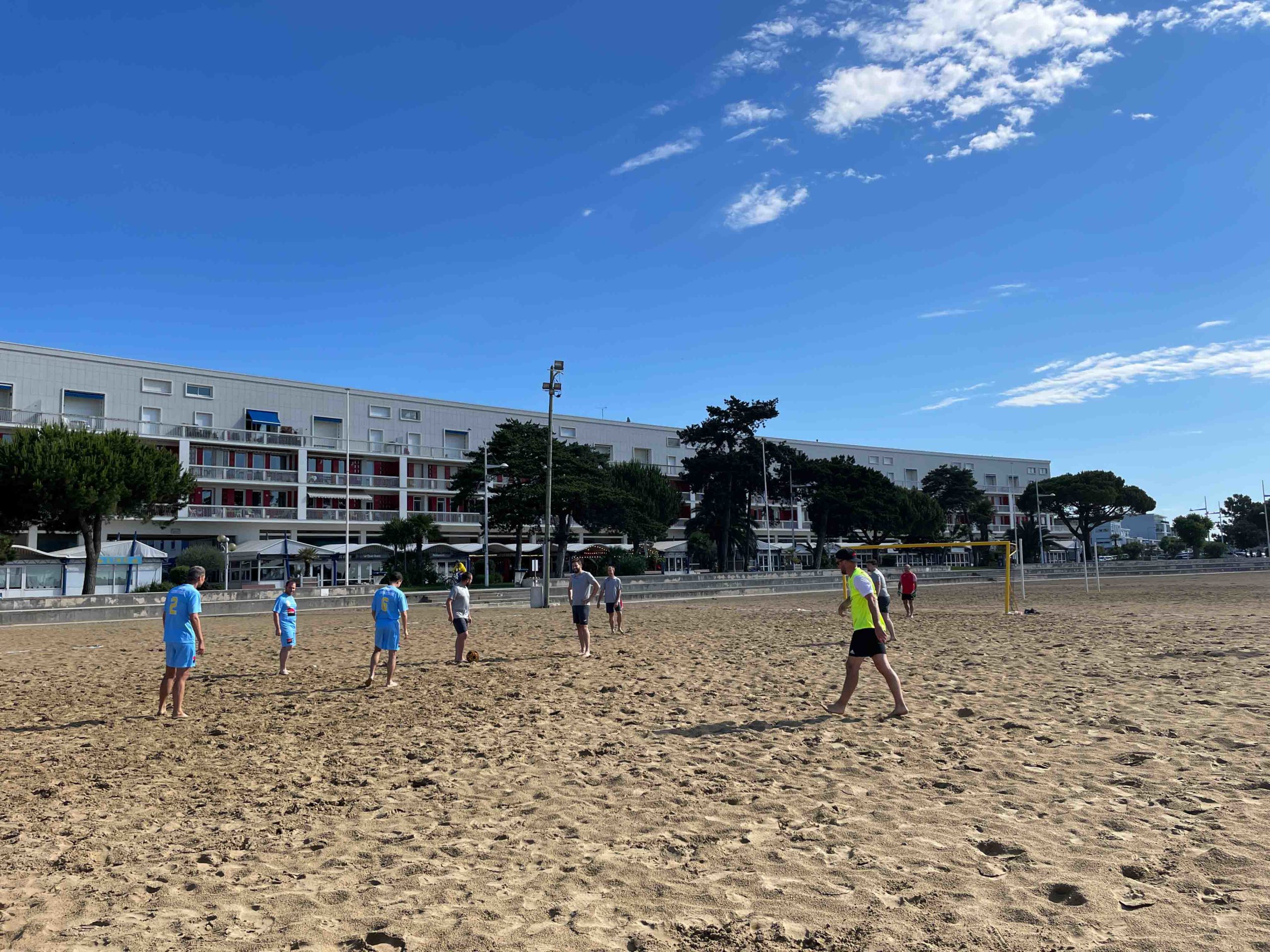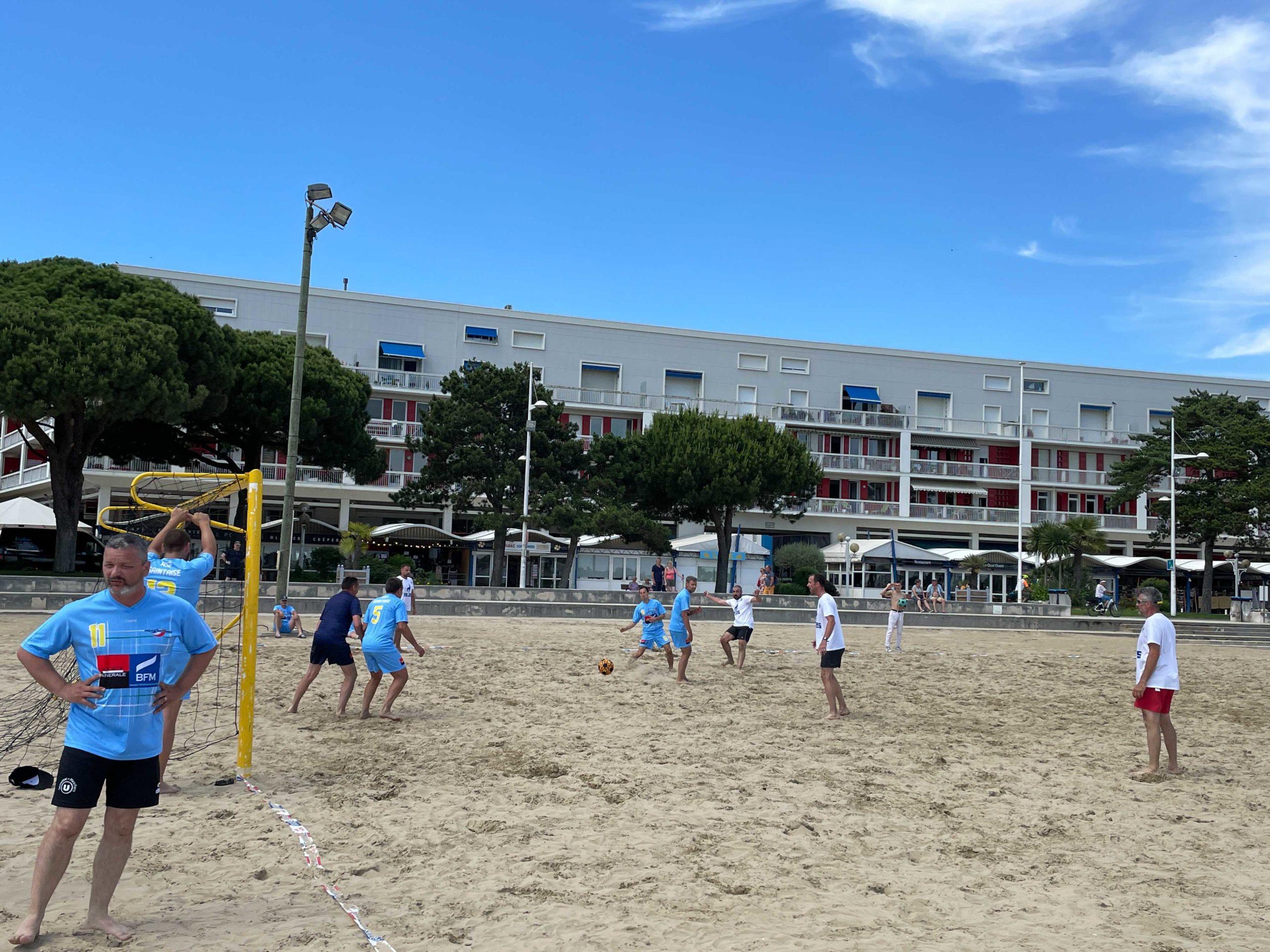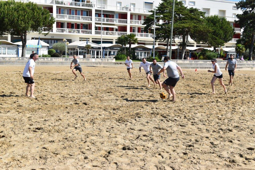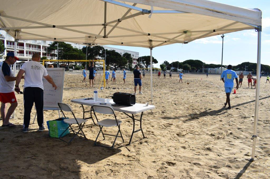 C’est sur une plage magnifique de Royan que ce sont affronté une dizaine d’équipe de la Ligue dans un tournoi de Beach Soccer sous un soleil de plomb, mais heureusement la mer n’était pas loi et certains sont aller faire trempette sur les petits temps de pose.