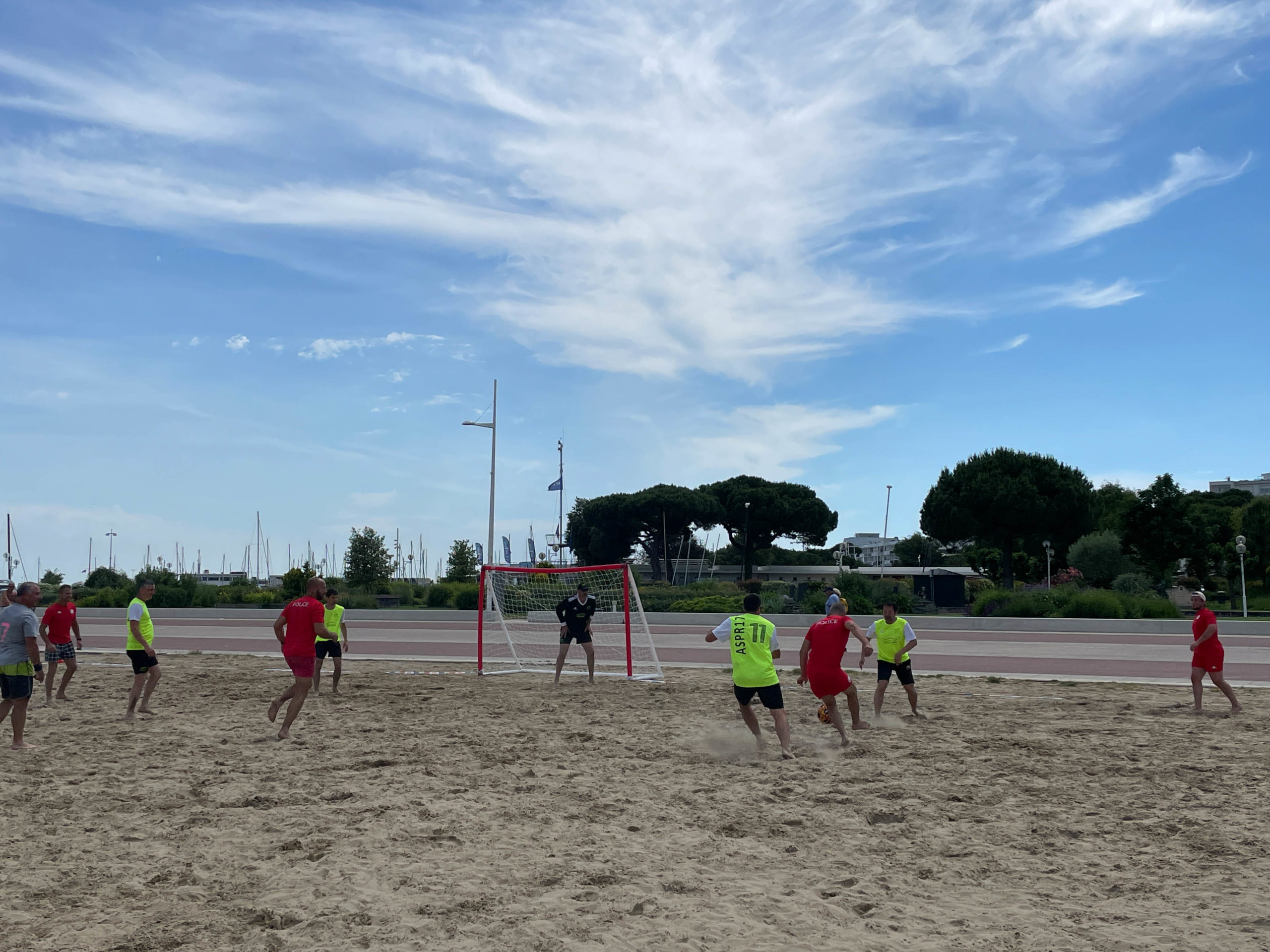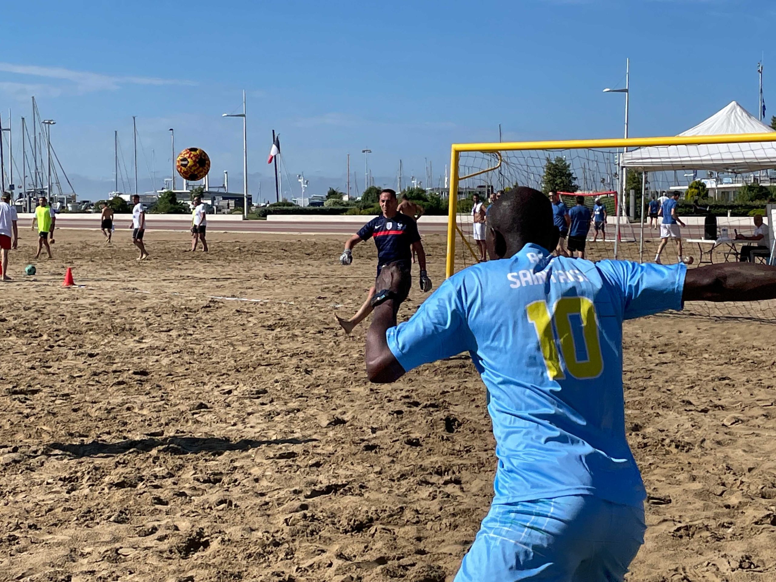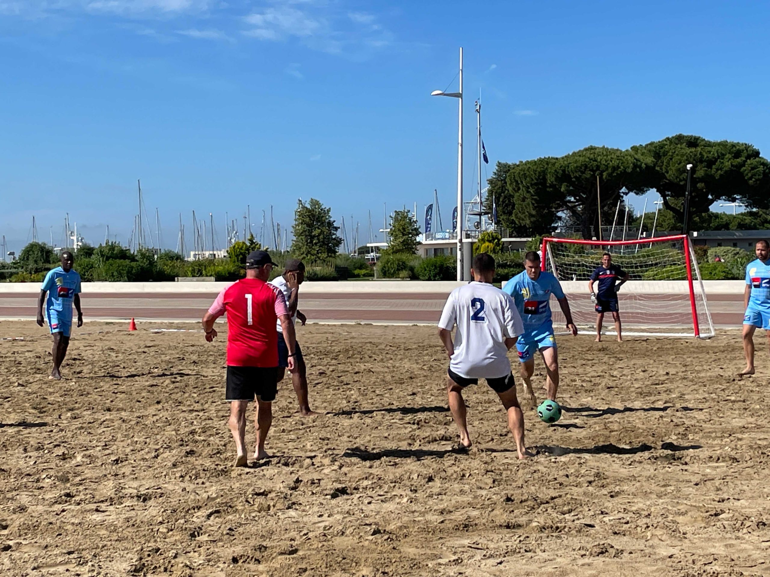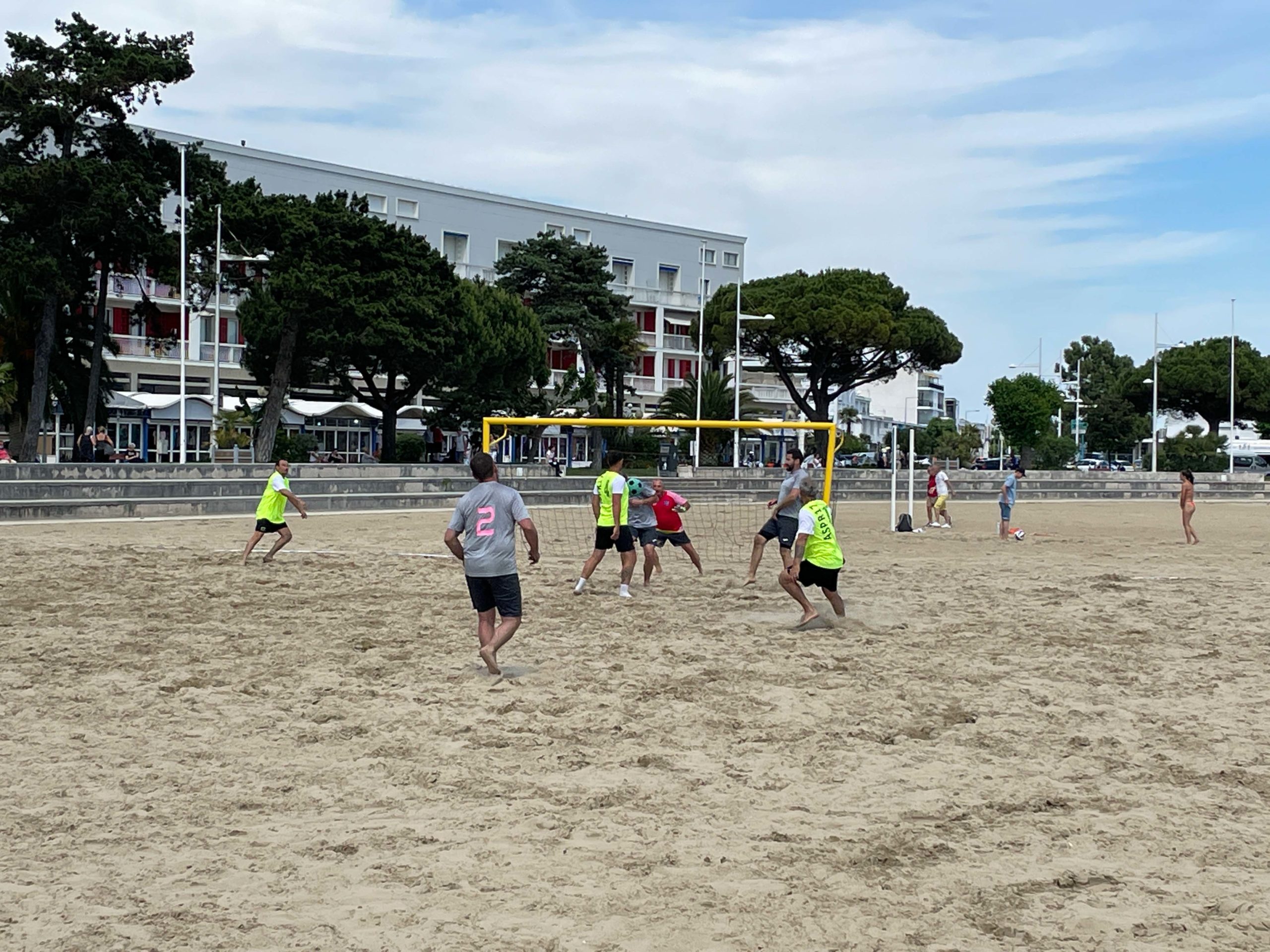C’est sur une plage magnifique de Royan que ce sont affronté une dizaine d’équipe de la Ligue dans un tournoi de Beach Soccer sous un soleil de plomb, mais heureusement la mer n’était pas loi et certains sont aller faire trempette sur les petits temps de pose.