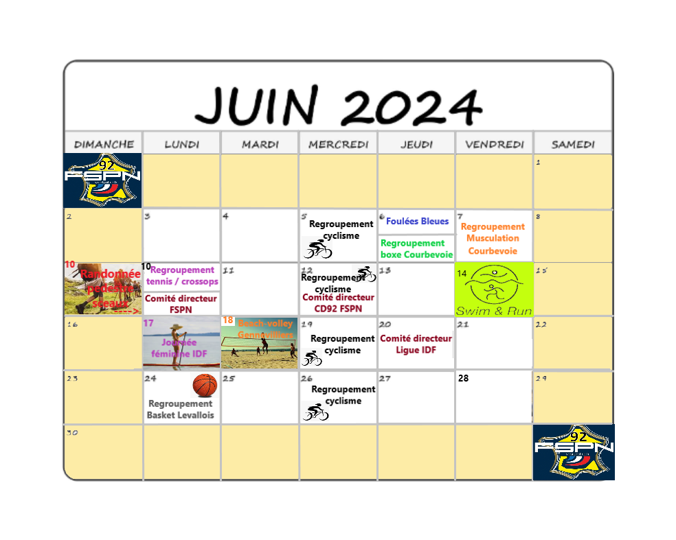 Parallèlement à ces entrainements, plusieurs évènements sportifs à l’initiative du CD92 FSPN vous permettront de vous retrouver sur des moments de convivialité et/ou de compétition :