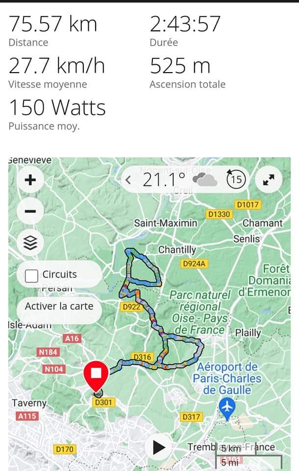 Une sortie de 75 ,57 kilomètres avec un dénivelé positif de 525m.