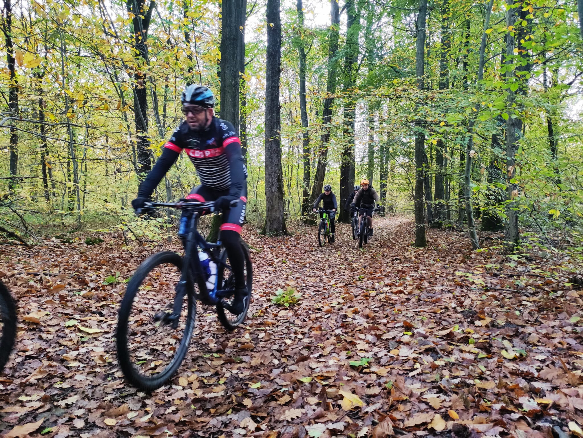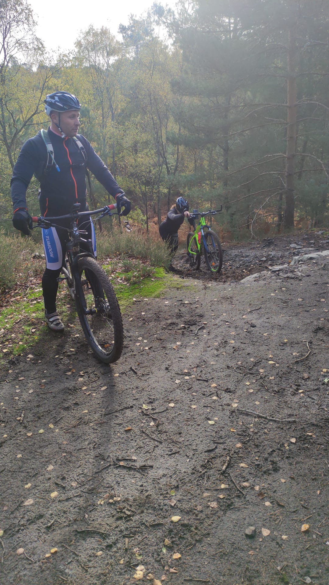 Emmenés d’une main de maître par Jonathan, pour qui cette forêt n’a plus aucun secret, les kilomètres se sont enchaînés sur des parties techniques, grasses, sablonneuses, et pentues comme on aime où une petite pause au sommet de la « pierre sorcière » a permis à chacun de reprendre des forces.
