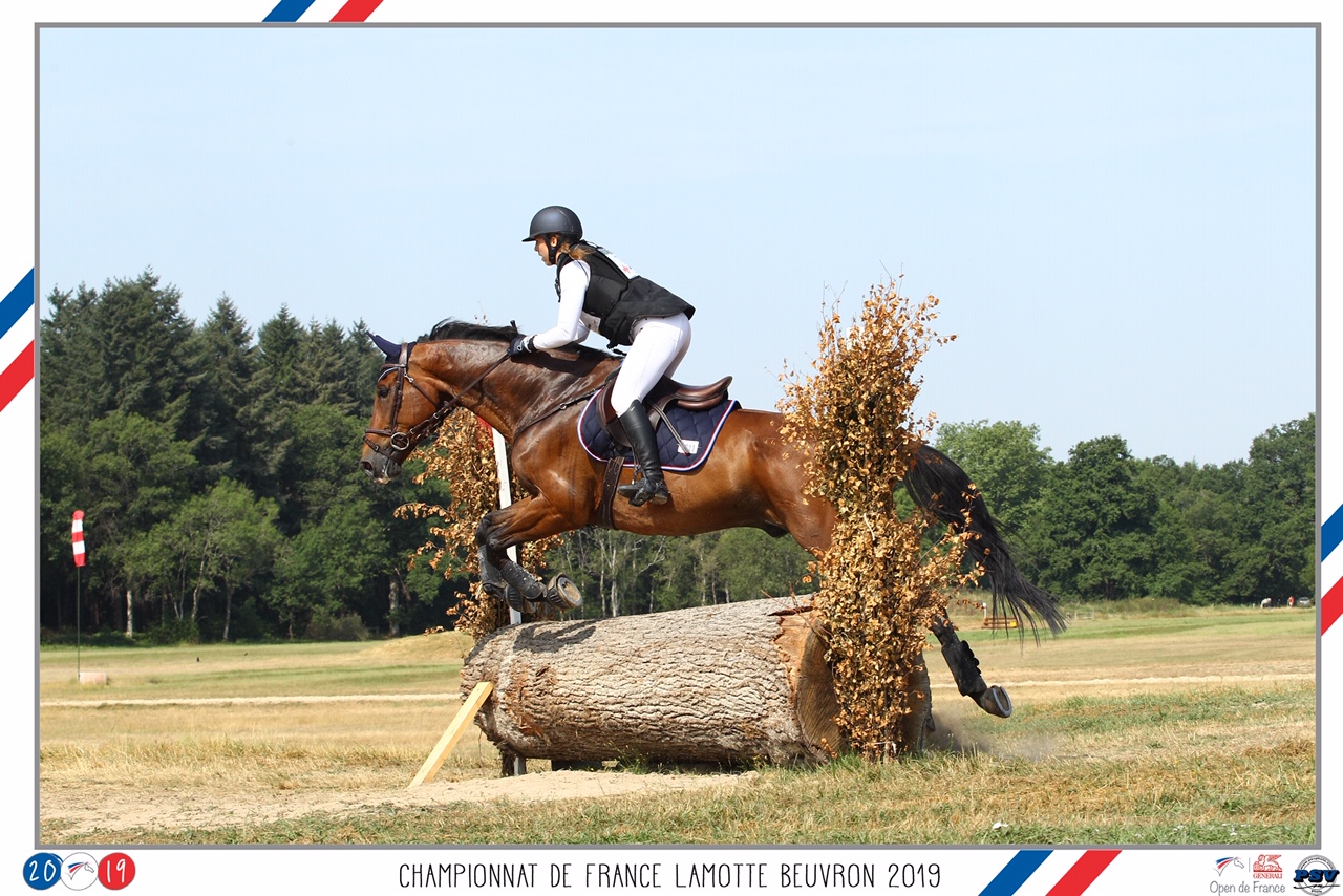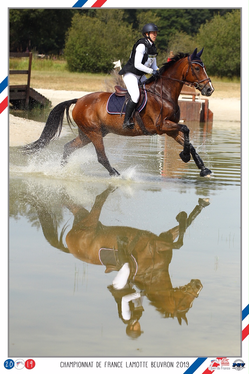 Mercredi, place au cross, l’épreuve la plus spectaculaire ! Le parcours proposé est bien plus technique que durant la saison, mais j’ai confiance en mon cheval, il a beaucoup plus d’expérience que moi. Le parcours, composé de 12 obstacles (dont deux triples), propose 3 vraies difficultés. L’enchainement des obstacles 4 et 5 en courbe de 3 foulée se passe très bien pour nous, super, une caresse et ça repart ! Se présente bientôt la combinaison de l’obstacle 7 (A, B C, chacun séparé par deux foulées). Un bon virage pour axer mon cheval nous permet de passer cette étape clé du parcours sans difficulté. Nous montons et redescendons de la bute sans encombre. C’est ensuite au tour du gué de nous barrer la route, mais l’eau ne nous fait pas peur ! Mon cheval trébuche sur l’obstacle numéro 9 à la sortie de l’eau, mais se reprend. Je sens que je perds le lien qui nous connecte, il se met à tirer, mais je tiens bon, il ne faut pas négliger l’obstacle 10, dernier avant la combinaison la plus technique du parcours. Nous repassons par le gué et nous y voila, le juge de paix de cette compétition. 11A, c’est bon, je coupe un peu mon virage mais je passe le 11B. Tout s’enchaine vite, trop vite, je m’applique du mieux que je peux, je monte mon 11C même s’il ne vient pas aussi bien que prévu. Des pointes, on en a sauté en long en large et en travers, allez, je serre mes jambes j’y crois, on y va ! J’ai juste commis une erreur. A trop vouloir conduire et passer de l’autre côté, je n’ai pas posé ma main, je l’empêche de sauter. Je viens de commettre l’erreur qui me coûte mes chances de podium. Je suis pénalisée de 20 points, bien trop pour pouvoir revenir… Je termine tout de même mon parcours et félicite mon compagnon qui a été super sur ce cross. Quelle rage, je suis trop tendue pendant 1/4 de seconde et mes rêves de victoire s’effondrent, je retombe à la 19° place… Je fais et refais le film dans ma tête, je m’en veux. Mais le sport est ce qu’il est, et il exige la perfection. Après une saison parfaite, je suis tombée dans le piège des chefs de piste. Le concours n’est pas terminé, il ne faut rien lâcher.