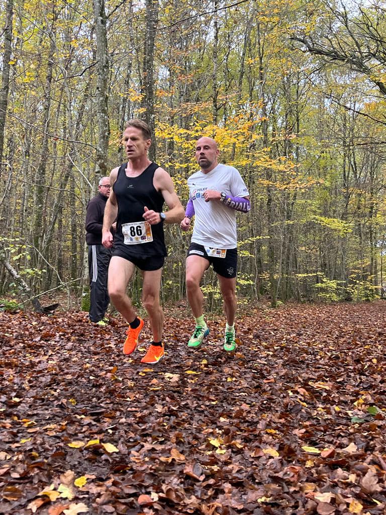 Le dernier cross-country organisé sur la région Grand Est datait de début 2020 et avait été organisé par Kamel B. sur ses terres chaumontaises. Avec l’organisation d’une coupe de France Police fin novembre à Etampes, le CTL de la discipline, Joël R. décidait d’organiser l’édition 2022 dans la localité de Moncel-les-Lunéville (54). Avec l’aide de son association d’appartenance, l’ASL CRS 39, Joël, mettait en place un parcours dans la forêt de Mondon, que les sportifs (cyclistes ou runners) de la région connaissent bien. Tracé exclusivement sur les chemins de terre de la forêt, le parcours emprunte pour beaucoup le même tracé que le trail de la Tranchée des Loups organisé par notre CTL quelques jours après notre compétition. Quelques passages techniques faits de petites descentes, de relances et de longues lignes droites agrémentaient le parcours que 57 participants se faisaient la joie de découvrir.