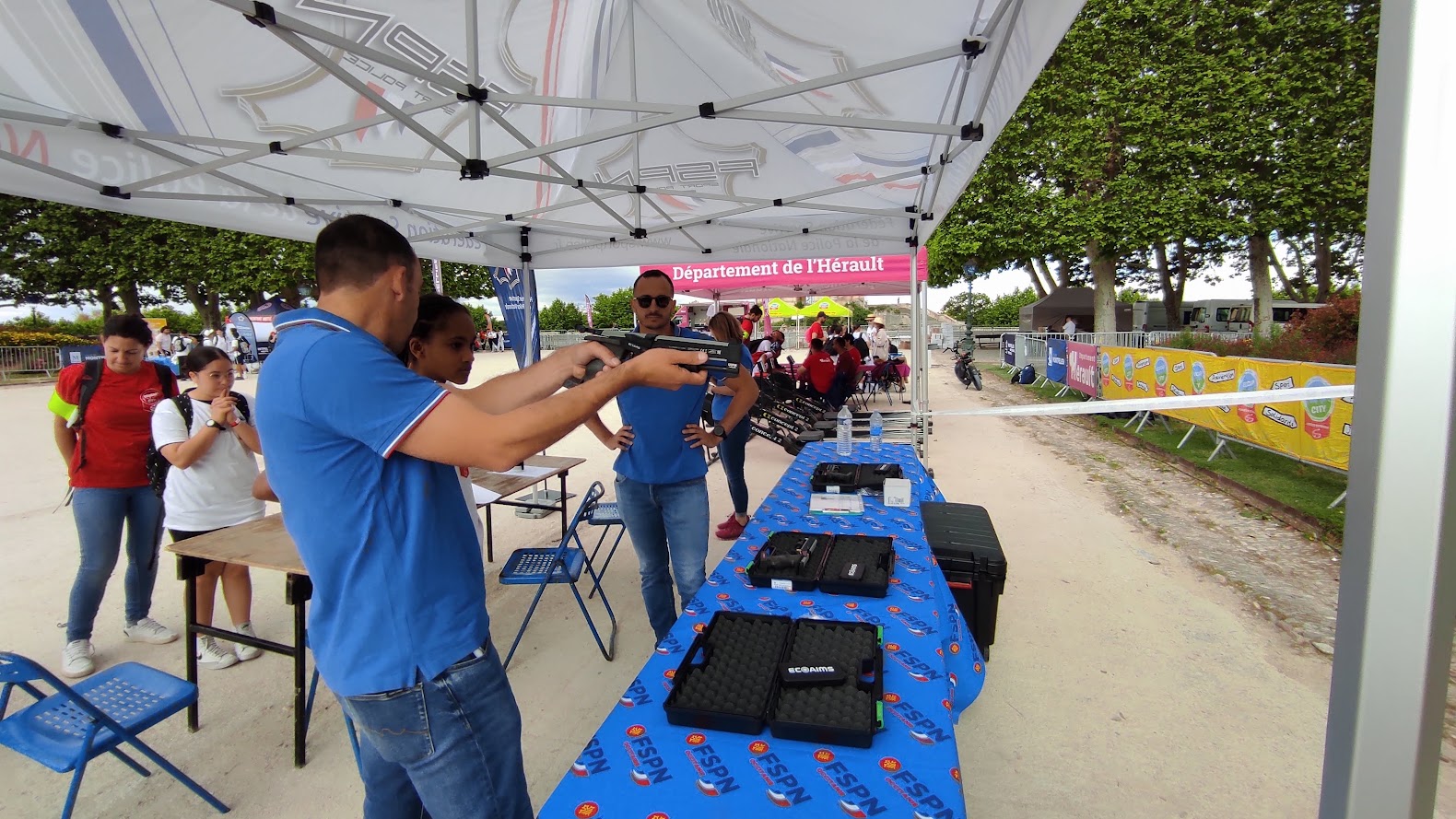 Sur son point de passage numéro 41, la Ligue Occitanie FSPN a pu présenter la FSPN (historique, rôle, objectifs, organisation….) mais aussi animer le stand de tir au pistolet laser servant de défi pour assurer des points bonus.
