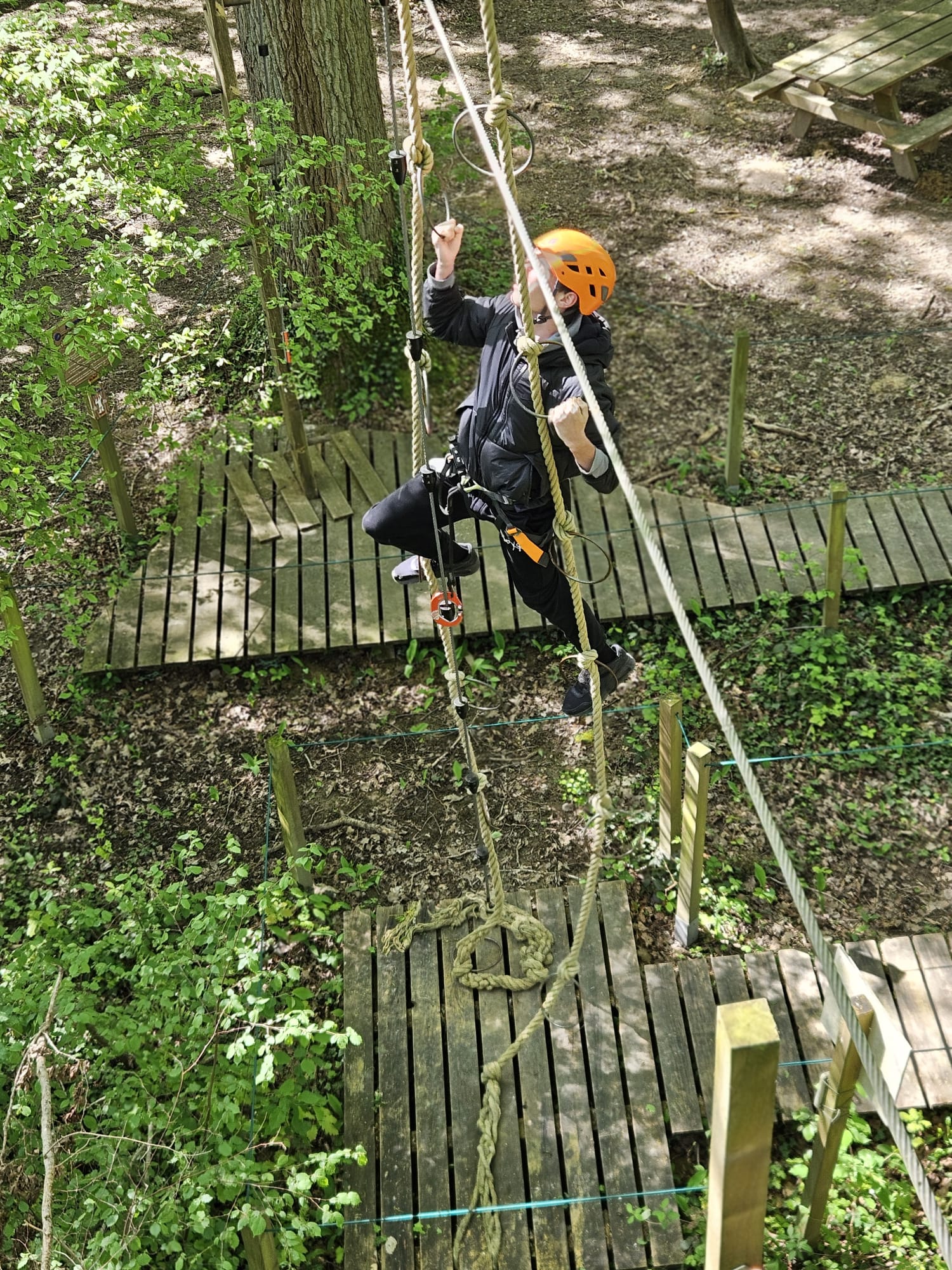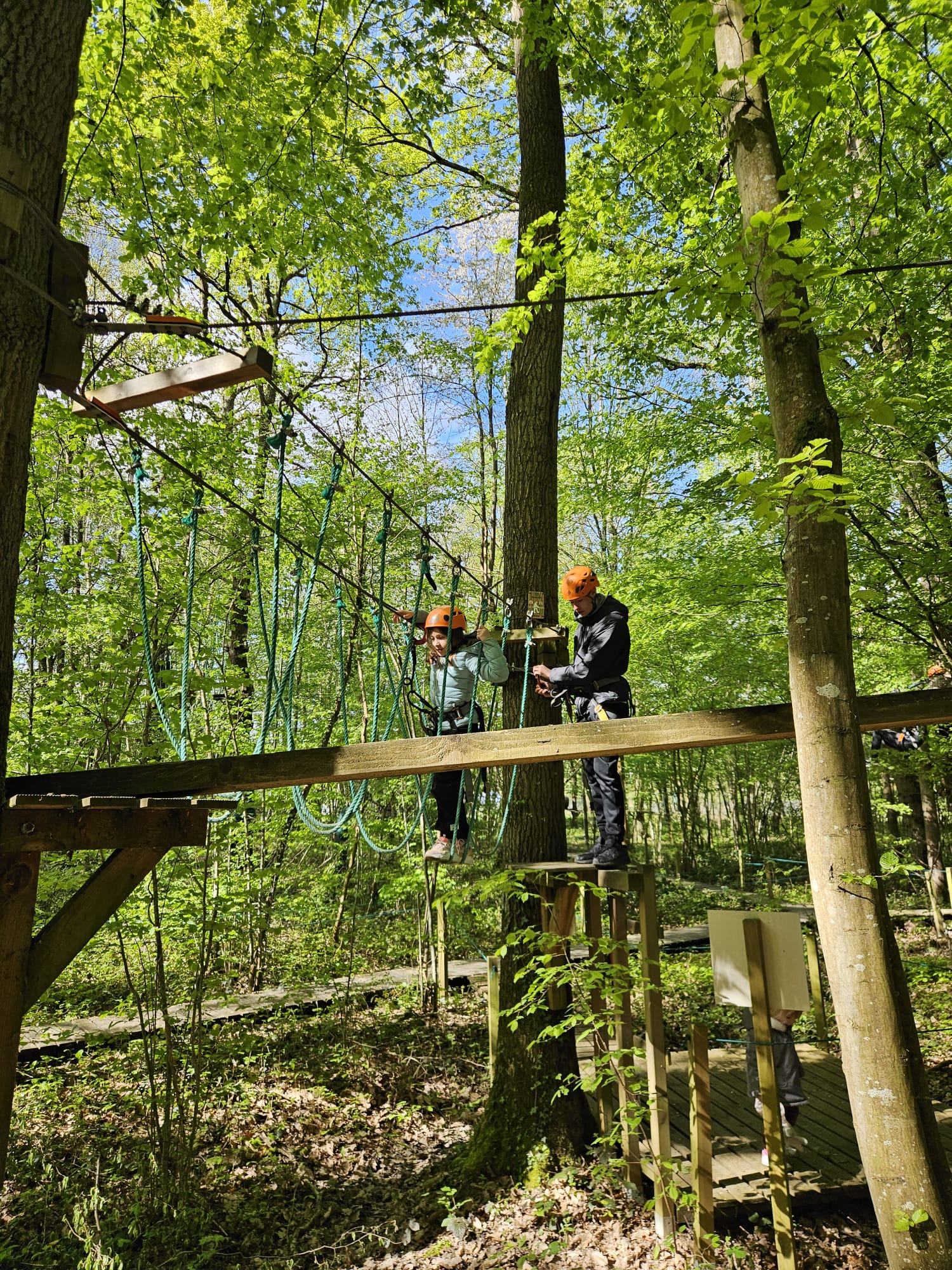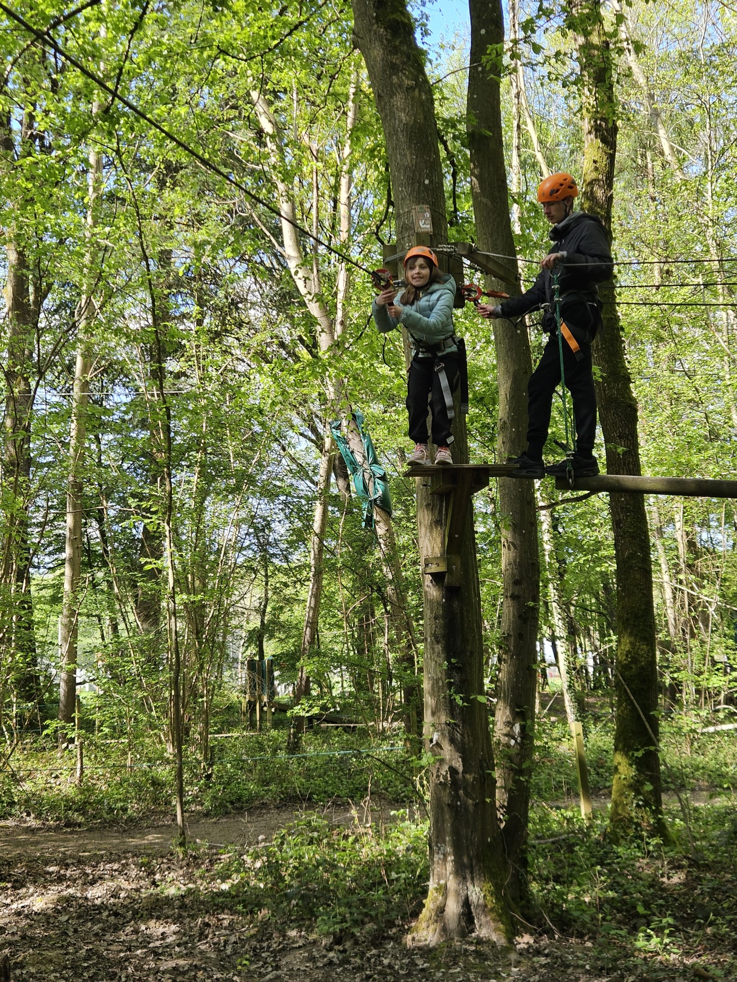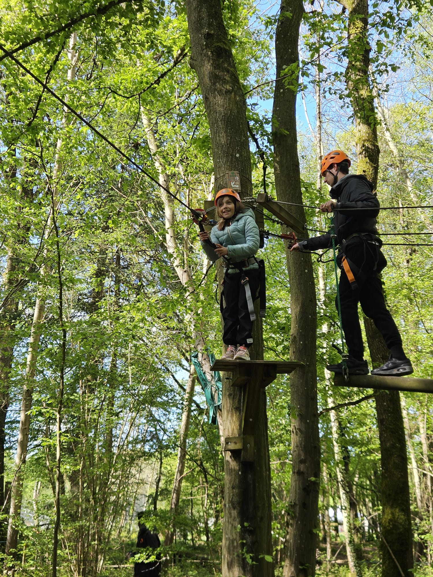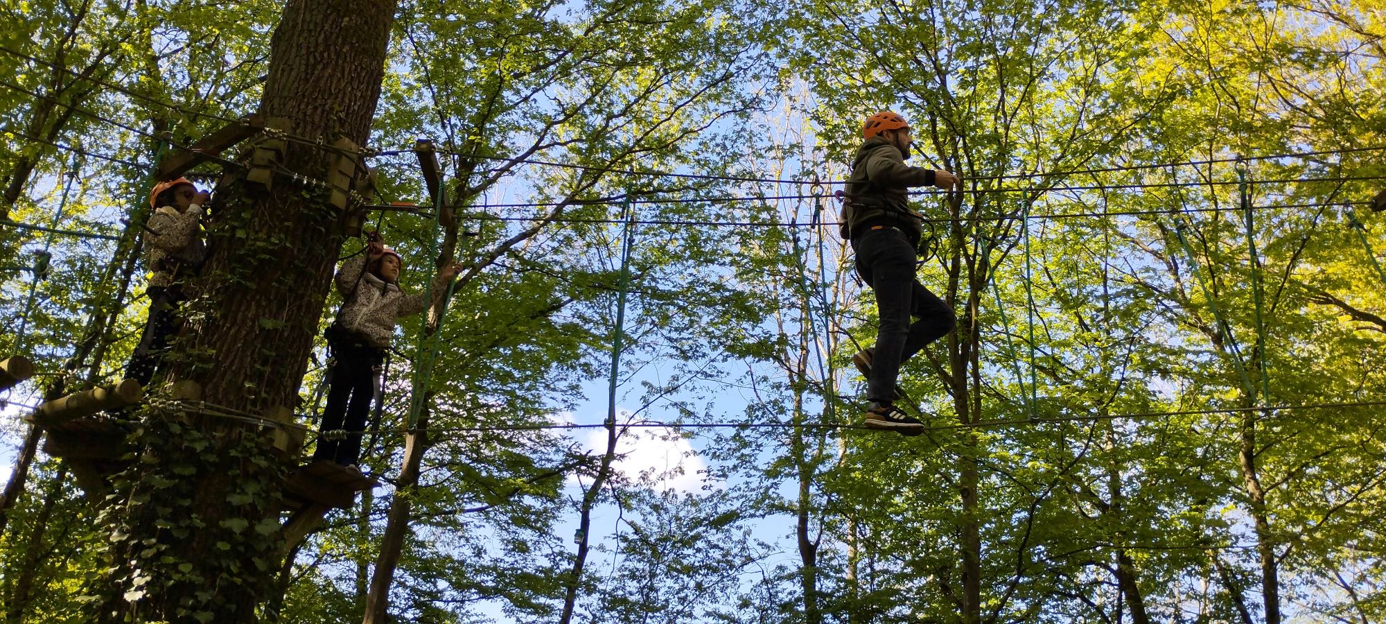 Au programme plusieurs parcours d’accrobranche allant du niveau arc en ciel pour les plus petits au niveau noir pour les plus hauts et techniques. Neuf parcours différents étaient accessibles avec tiroliennes, passages de ponts suspendus, montées de cordes et d’échelles pendant près de deux heures.