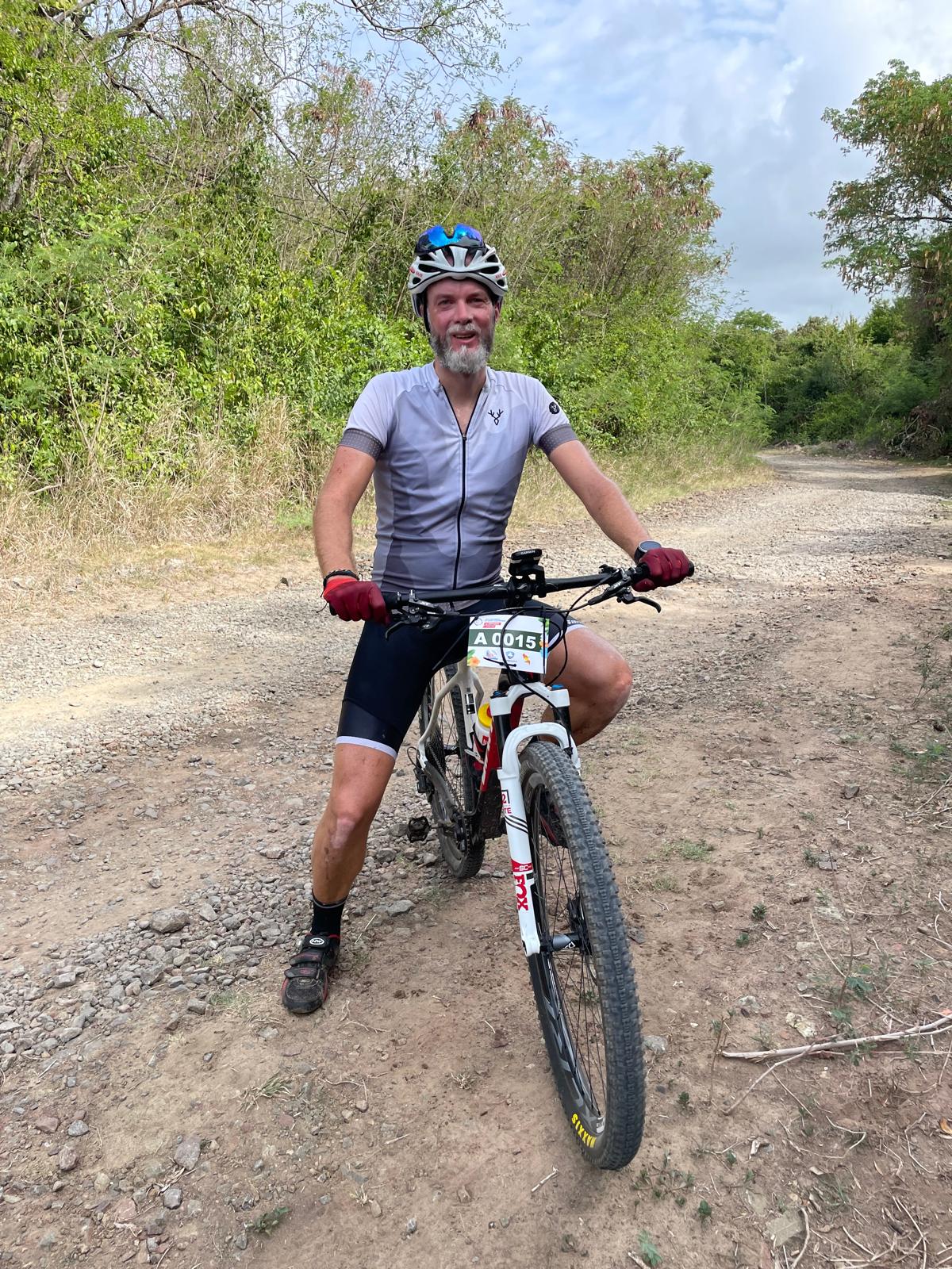 Un participant au VTT et à la course hors stade