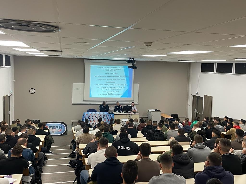 Ce matin, la ligue Occitanie FSPN a effectué une nouvelle présentation de la FSPN à l’école de Police de Toulouse pour les Egpx de la 271ème promotion qui compte 150 élèves plus 10 P.A. Cette intervention s’est faite en collaboration avec l’Association Sportive Culturelle Loisirs de l’école . Lors de notre passage, les élèves ont été très attentifs aux explications et l’échange avec la nouvelle « génération » constructif.