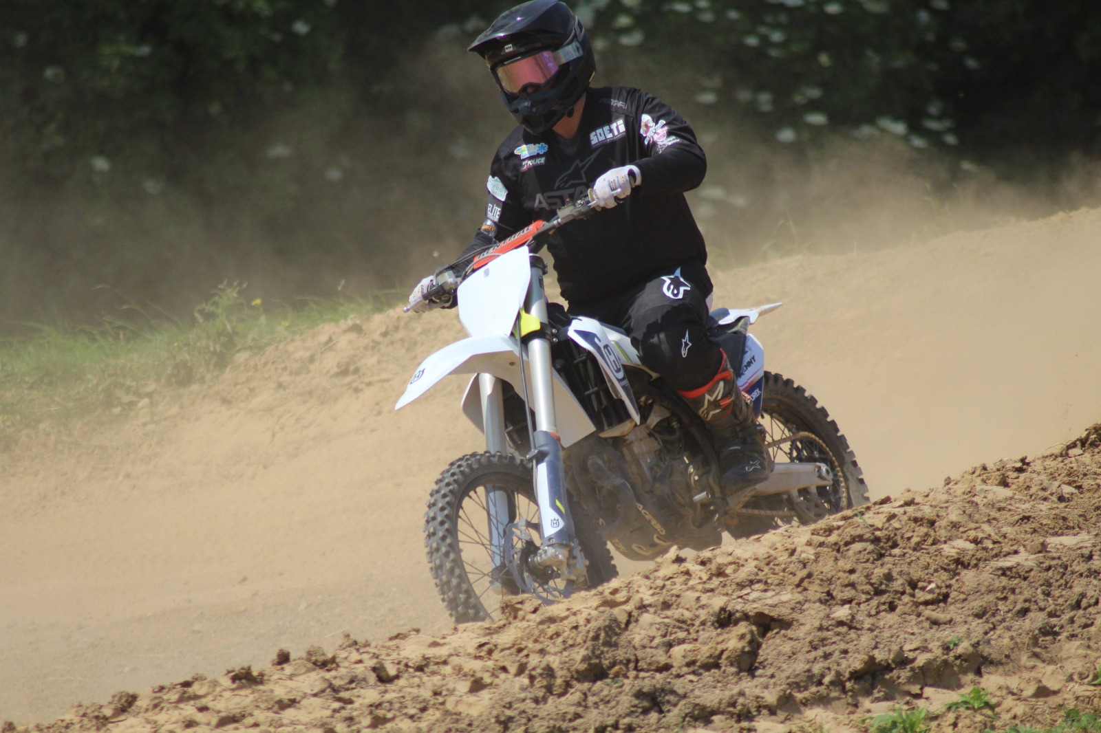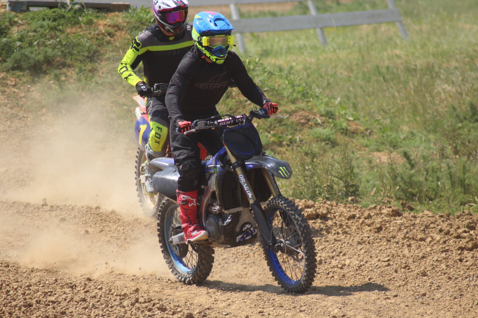 Une belle journée de pilotage avec des pilotes de motocross, d’enduro, et même un compétiteur de Pitbike sur un circuit technique et rapide avec beaucoup de sauts.