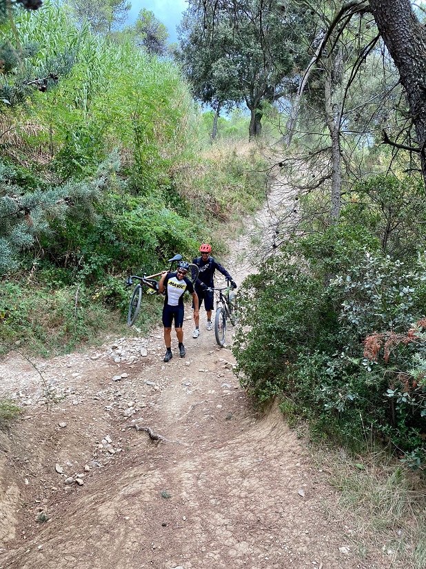 - En effet, le 3 septembre la météo prévue n’était pas idéale donc pour sortir des sentiers battus nous avons commencé par un footing de bonne heure enchaîné d’une sortie Gravel/vtt plutôt très arrosée sur la fin!!