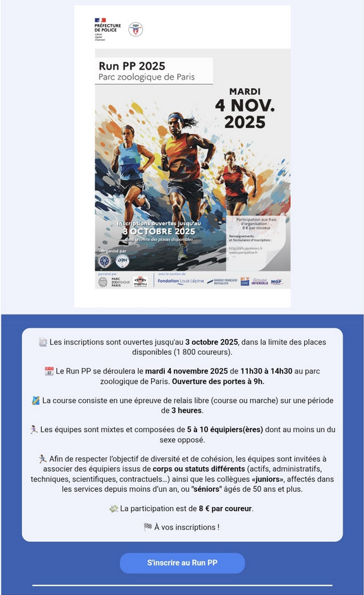 Il est de retour, comme tous les ans au premier mardi de novembre, le RUN PP 2025 fait son « come-back » dans les allées du Parc Zoologiques de Vincennes.