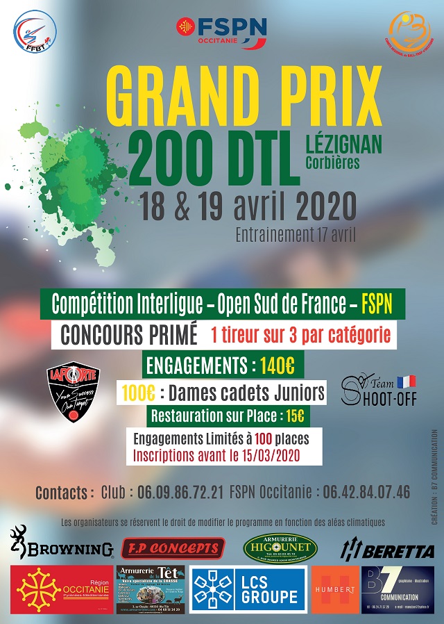La ligue Occitanie FSPN et son CTL de tir aux plateaux (GALINIER Fabien) organisent l’interligues « OPEN SUD DE FRANCE FSPN » le 17/18 et 19 avril au stand de tir La Pinède à Lézignan-Corbières(11).