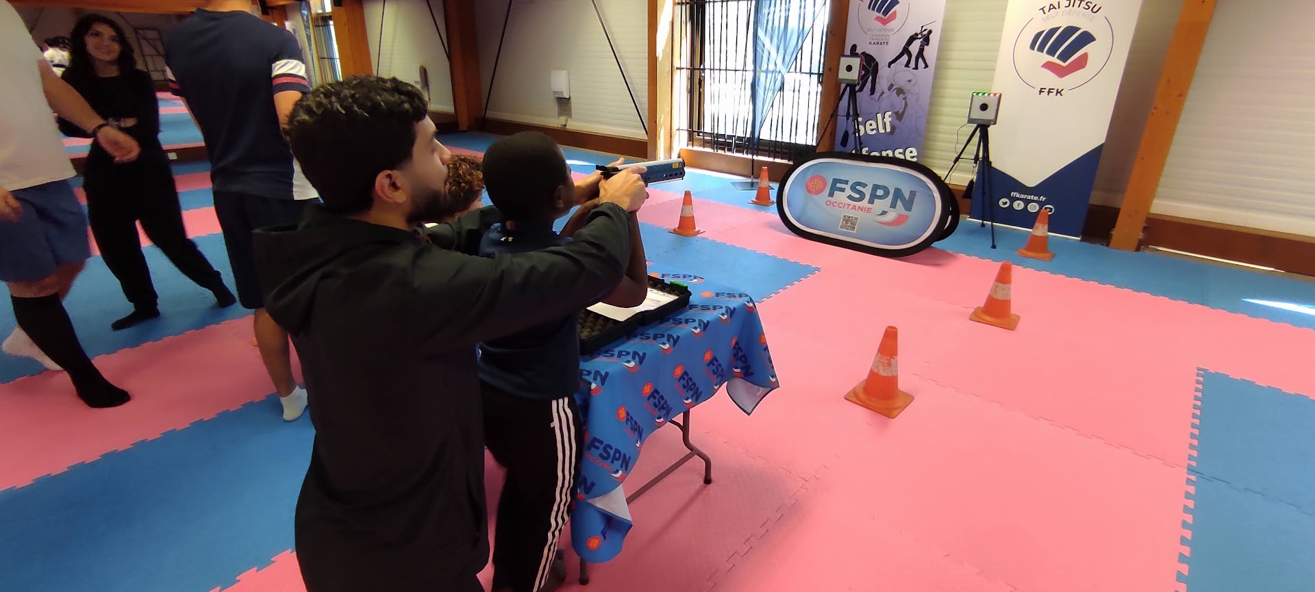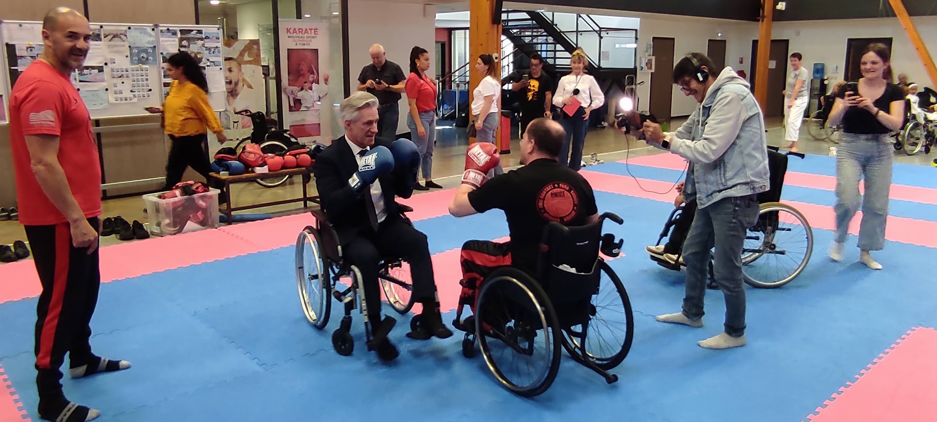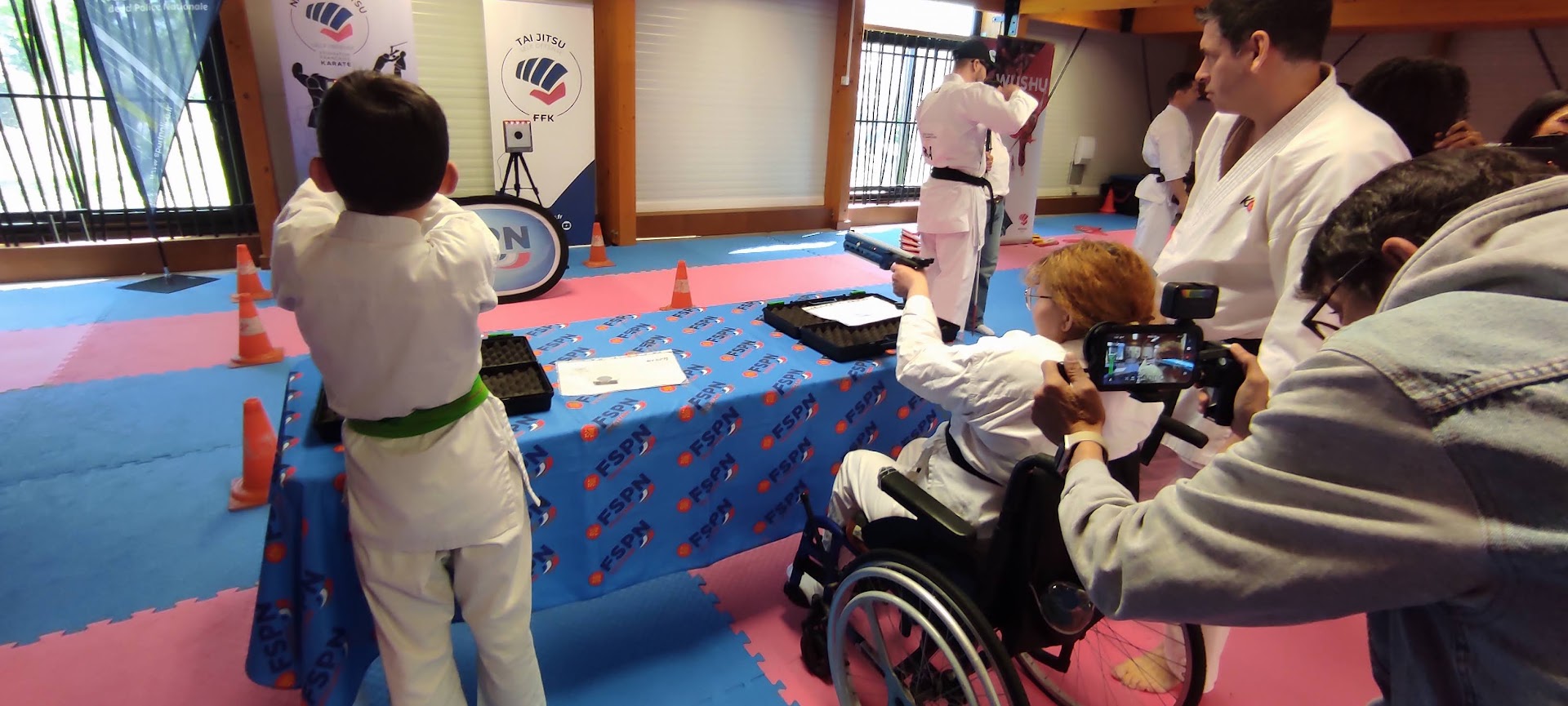 Invitée par la Fédération Française de Karaté, la ligue Occitanie a participé à la journée « UN TATAMIS POUR TOUS », une opération mise en place depuis 3 ans en faveur de l’inclusion et du handicap. Nous y avons animé un atelier tir laser pour les différents publics (déficience mentale, visuelle, motrice..). Etaient également présents tous les élus de la fédération (dont le président monsieur VERFAILLIE Bruno), les cadres techniques fédéraux (avec leur chef de file le DTN Yann BAILLON), l’équipe de France para-karaté représentée par Virginie BOYER (médaillée de bronze au championnat d’Europe), Jordan FONTENEY (médaillé de bronze au championnat d’Europe), Nohan DUDON (champion d’Europe) ainsi que deux stars du karaté français Medhi FILALI (champion du monde et champion d’Europe) et Steven DA COSTA (champion Olympique) rien que ça !!